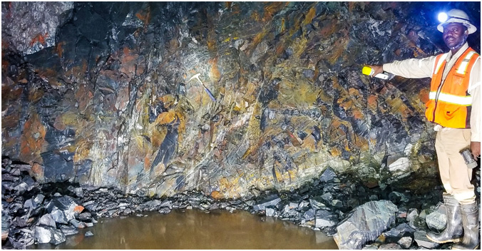 Geologist Kally Mbumba showing ultra-high-grade, chalcocite-rich ore at Kakula Mine. Chalcocite has the greatest percentage of copper of all the common sulphide-copper-bearing minerals ─ almost 80% copper by weight.