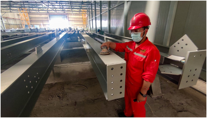 Wei Sun, paint foreman with Modern Heavy Industries, based in Taicang, China, polishing structural steel beams that will be used in Kakula’s processing plant.