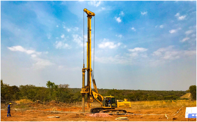 Pile rigging for a tower foundation for the new 35-kilometre, 220-kilovolt power line that will deliver clean, sustainable hydro-electricity from the national grid to the Kamoa-Kakula Project.