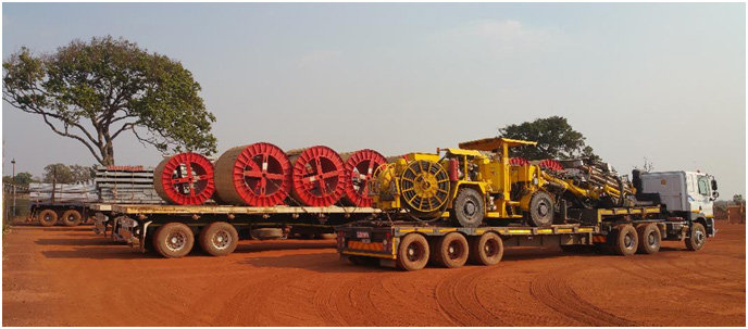 Several of the recently arrived truck loads of equipment for the Kakula Mine. An additional 300 truck loads are scheduled to arrive by the end of August.