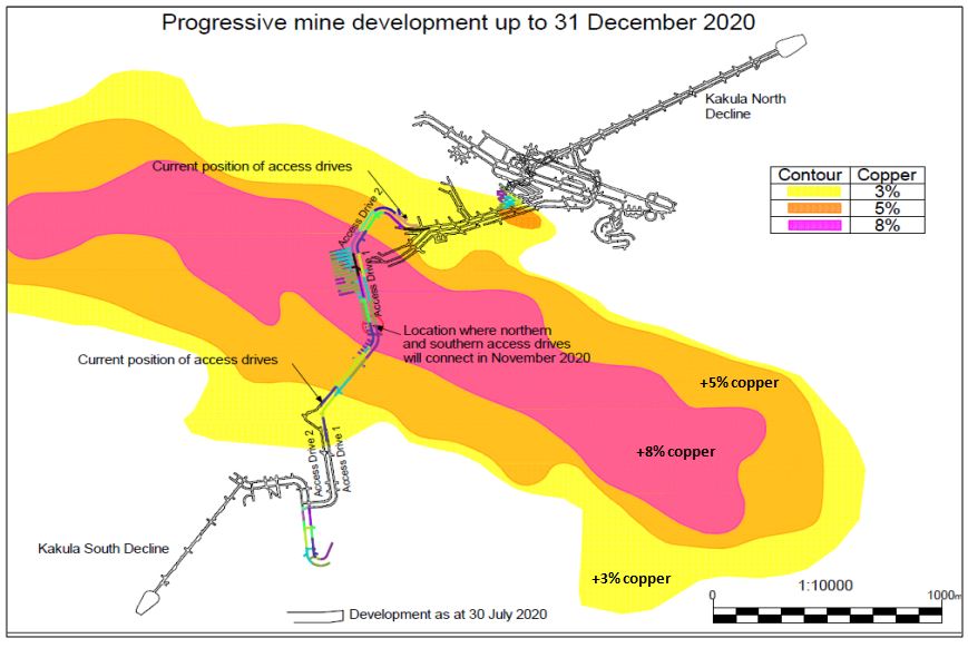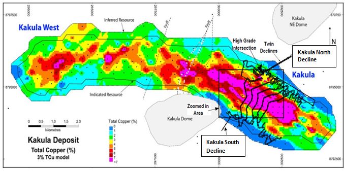 Kakula Mine development progressing towards zone of +8% copper in centre of deposit