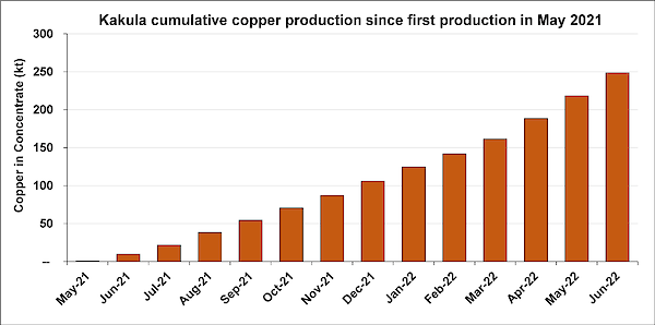 Figure 1: Monthly Kakula cumulative copper production – total production of approximately 250,000 tonnes copper from May 2021 to June 30, 2022.