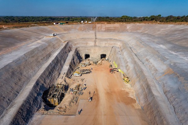 Construction is nearing completion on the Phase 3 box cut and decline ramp at the Kamoa 1 and Kamoa 2 mines, while excavation of the twin declines to access Phase 3 mining areas also is advancing well. Construction works for the ramp, cut-off drains, and water-collection sumps are well advanced.