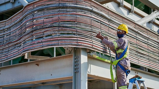 Ilunga Geplige strapping cables at the Phase 2 secondary crusher. Approximately 170,000 metres of copper electrical cable will be used to wire Kamoa-Kakula’s Phase 2 plant.