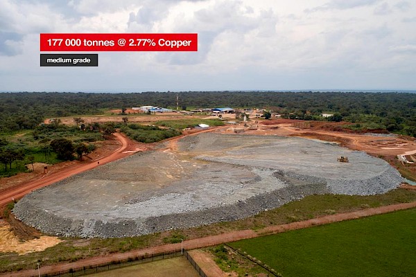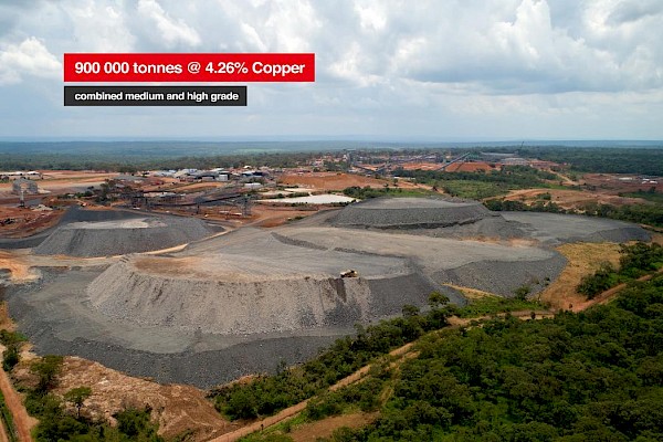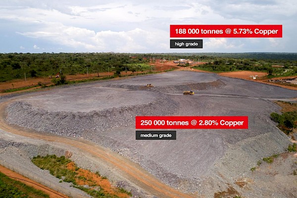 Kansoko decline ore stockpiles containing 177,000 tonnes grading 2.77% copper, including 3,000 tonnes of high-grade ore grading 6.48% copper.