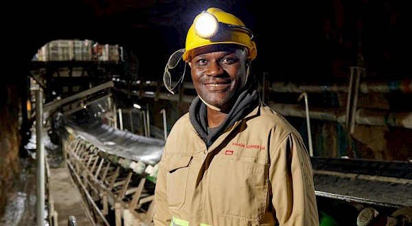 Bernard Ngoyi, belt attendant, at the Kakula North underground ore conveyor.