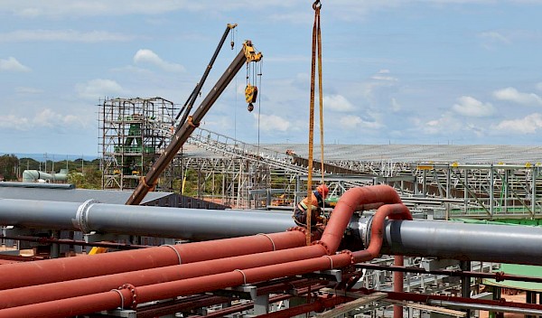 Less than 680 tonnes (of a total of 4,882 tonnes) of plant structural steel remains to be installed, and 635 tonnes of platework have been installed out of a total of 863 tonnes. All steel and platework is expected to be installed in the next five to seven weeks. With the bulk of the steel structures now complete, the SMPP contractor is focusing on piping and sheeting installation. Approximately 23 kilometres of piping has already been installed.