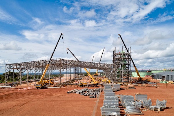 Civil works for the first concentrator plant is effectively complete (30,135 cubic metres of concrete poured from a total of 31,407 cubic metres) with all areas handed over and well advanced in steel, mechanical, piping and platework (SMPP) erection and installation.
