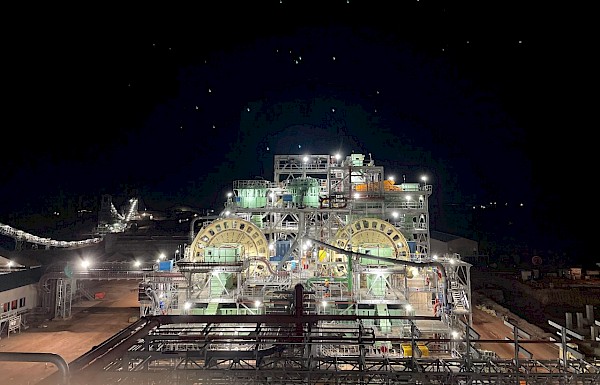 Kamoa-Kakula’s initial 3.8-Mtpa concentrator plant, energized with hydropower.