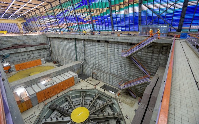 Interior photo of the Inga II hydropower facility on the right bank of the Congo River at Inga falls, which was originally equipped between 1977 and 1982. Inga II has eight 178-MW turbine and generator units.