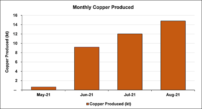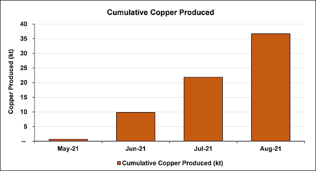 Chart 2: Cumulative tonnes of copper produced May 2021 to August 2021.