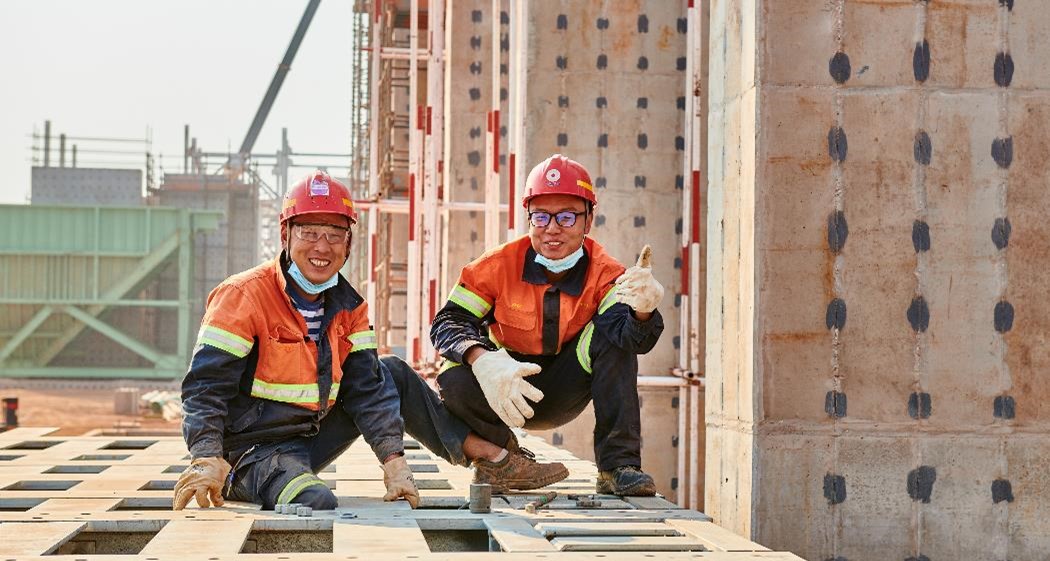 Chen Hong Tao (left) and Wang Pengfei installing the Phase 2 flotation base plates.