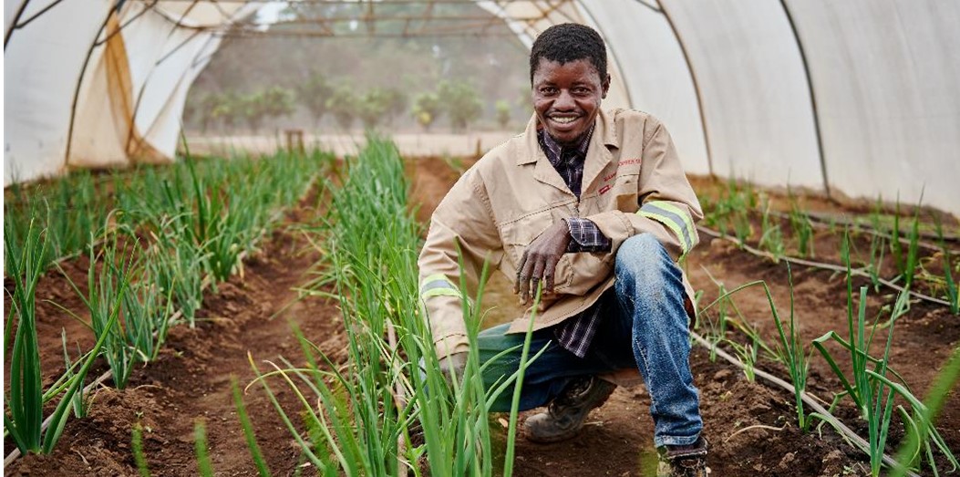 Celestin Kazeu Kushinga at the Kamoa-Kakula demonstration garden, a key part of Kamoa Copper’s program to promote sustainable development.