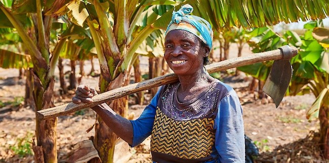 Mbangu Sangombe, one of the owners of the Katayi Community banana plantation.