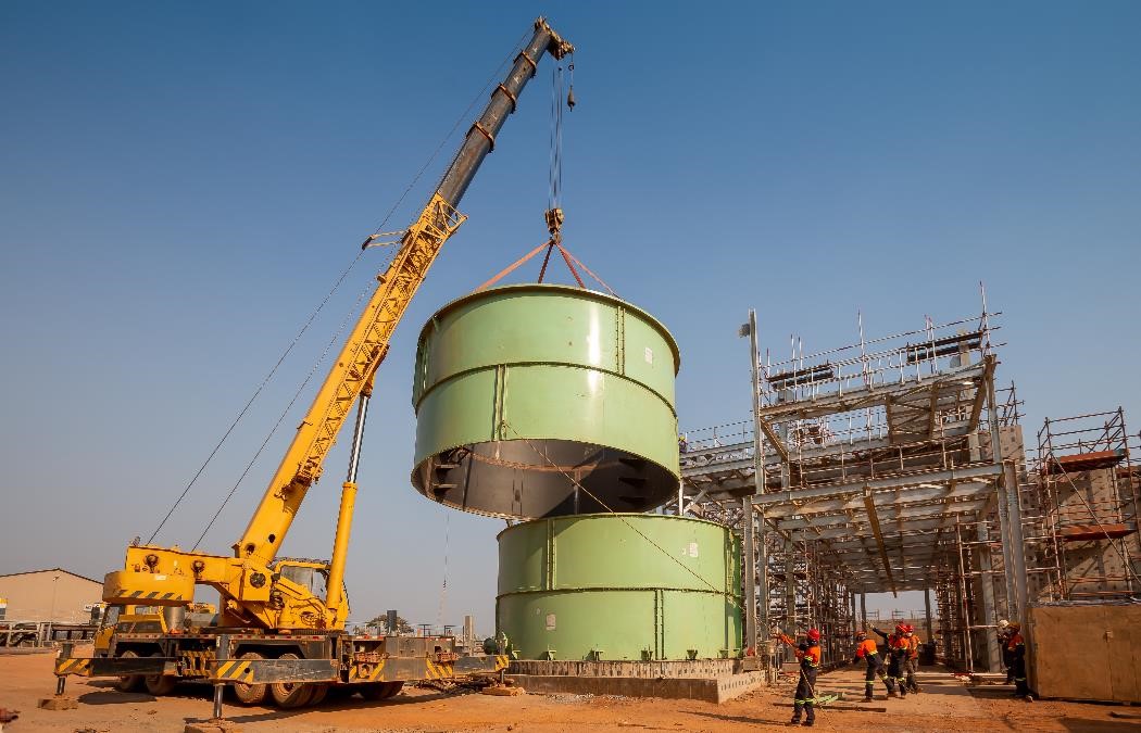 Lifting the Phase 2 flotation conditioning tank into position.