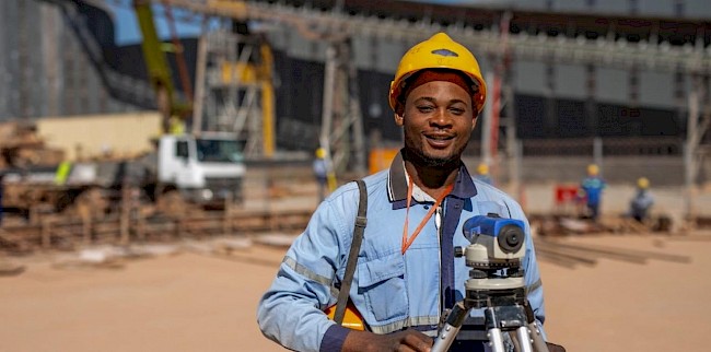 Surveyor Celestin Kayemba Kayombo, a member of the construction team building Kamoa-Kakula’s Phase 2 concentrator plant.