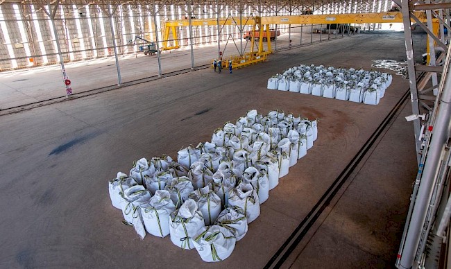 Bags of Kamoa-Kakula extremely high-grade, clean copper concentrate ready for export to international markets.