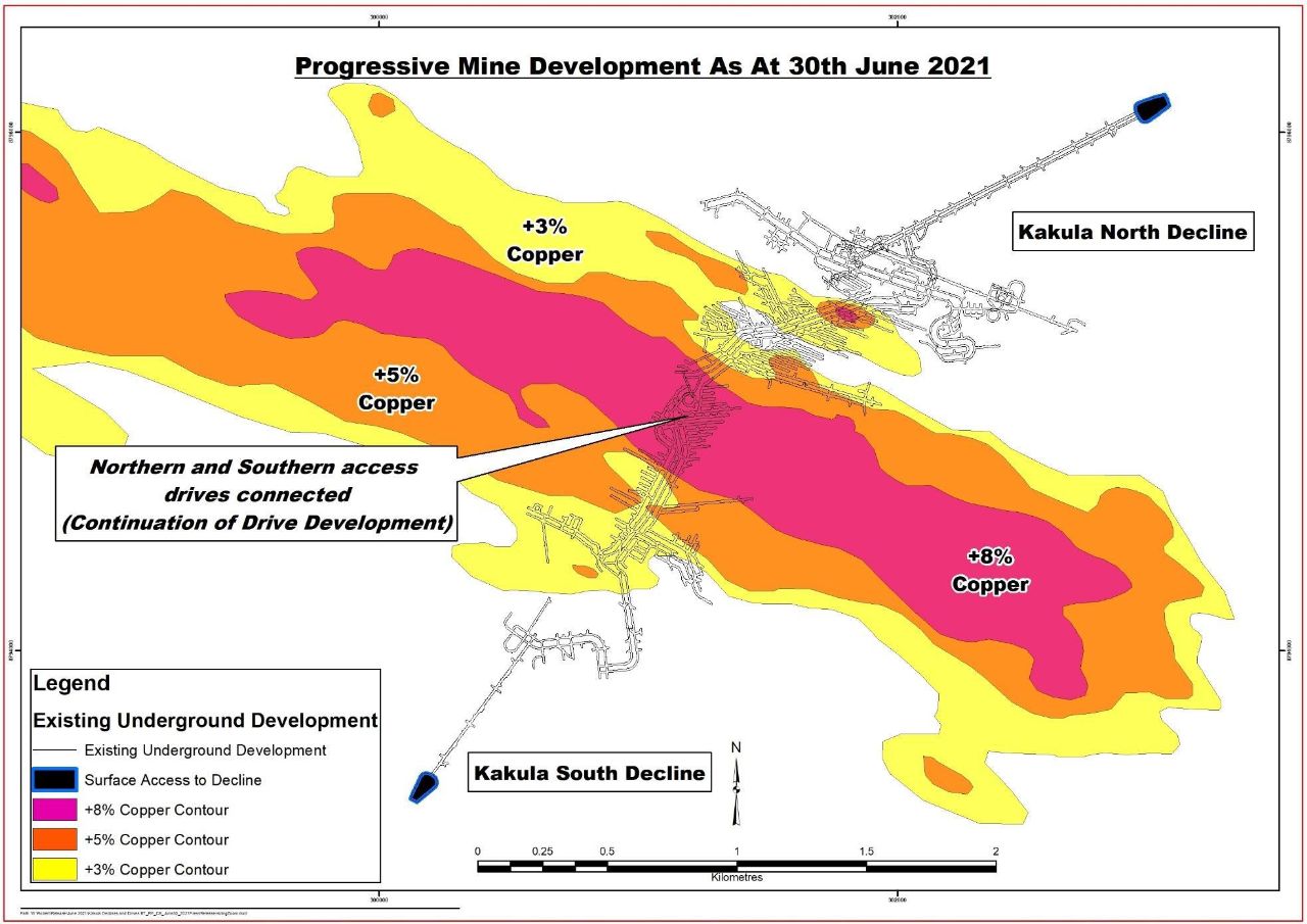 Figure 1: Underground development completed at Kakula Mine to June 30, 2021 (in black).