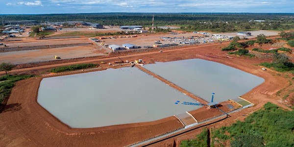 Kakula’s mine water settling ponds that receive surplus water pumped from underground. Some of the water will be used in the concentrator plant.