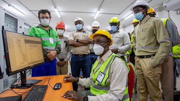 Ben Munanga, newly appointed Chairman of Kamoa Copper, monitoring the energizing of the main 220-kV substation along with members of senior management of SNEL and Kamoa Copper.