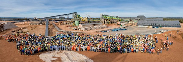 Some of the approximately 7,000 employees and contractors who helped to build the Phase 1, 3.8-Mtpa concentrator plant ahead of schedule and within budget.
