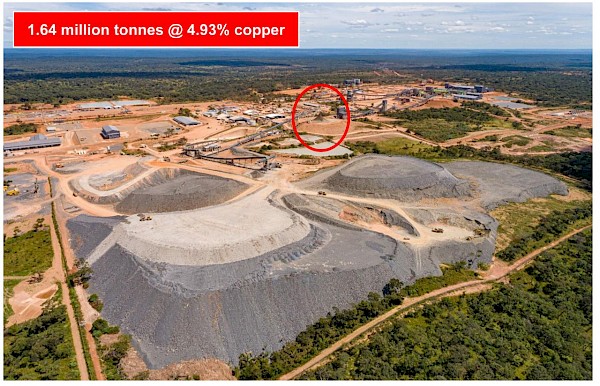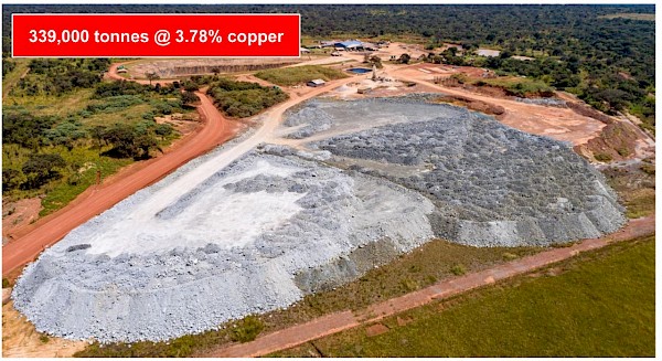 Kansoko decline blended ore stockpiles containing 339,000 tonnes grading 3.78% copper (consisting of 83,000 high-grade tonnes @ 6.19% copper and 255,000 medium-grade tonnes @ 3.00% copper).