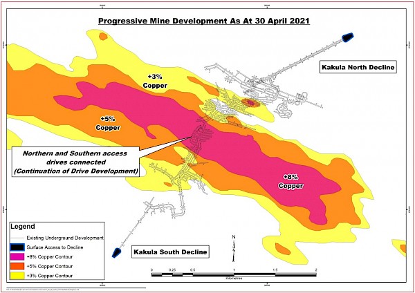Figure 1: Underground development completed at Kakula Mine to April 30, 2021 (in black).