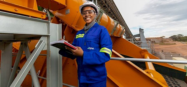 Kelebogile Choku, Process Engineer with DRA, overseeing the commissioning of the new crushing and screening plant vibrating screen. DRA, a diversified global engineering group headquartered in Perth, Australia, is the Engineering, Procurement and Construction Management (EPCM) contractor for Kamoa-Kakula’s Phase 1 construction.