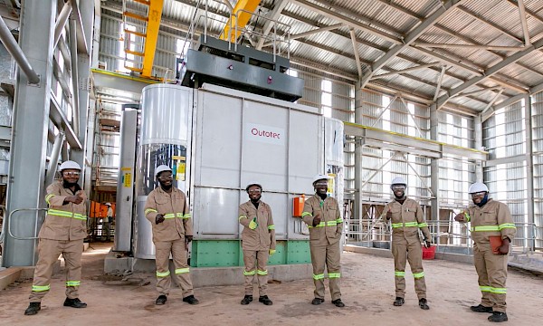 Newly-trained operators at the Outotec concentrate filtration plant. L-R: Prince Mwenilungena; Teddy Kangwe Kangombe; Sakisa Mazau Papy; Katsmiza Tshisonk; Kazadi Mwyombe Jordan; and Makungu Mushika Idris.