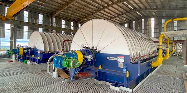 Four new large-scale disk filters from FLSmidth, a Danish multinational engineering company, installed in the backfill plant. The filters are used for tailings filtration prior to mixing.