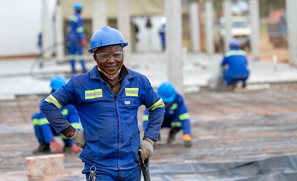 Contractor Elie Ngox Tbhisola working on the new primary healthcare wing of the Kamoa hospital.