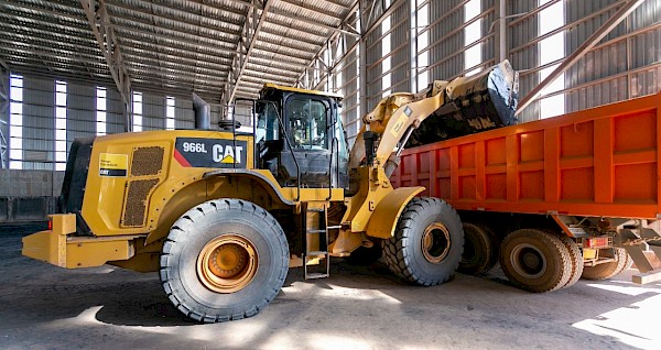 Loading copper concentrate for bulk transportation to the nearby Lualaba Copper Smelter, outside of Kolwezi.