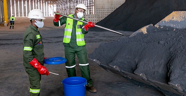 Samples of Kamoa Copper’s copper concentrate being collected before it is shipped to the Lualaba Copper Smelter.