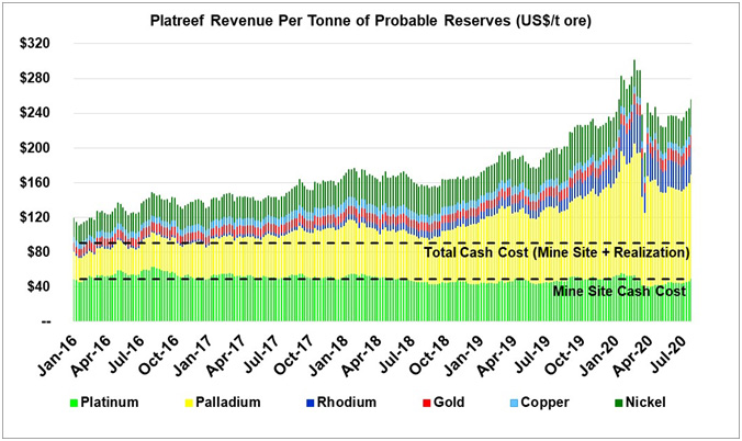 Figure 1. Revenue per tonne of ore at the Platreef Project since 2016 (shown in US dollars)