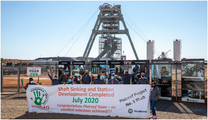 On July 15, 2020, members of the Platreef team celebrated the completion of shaft sinking and the 996-metre-level station development work in Shaft 1.