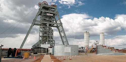 Shaft 2, to be located approximately 100 metres northeast of Shaft 1, will have an internal diameter of 10 metres,will be lined with concrete and sunk to a planned, final depth of more than 1,104 metres below surface. It will be equipped with two 40-tonne rock-hoisting skips with a capacity to hoist a total of six million tonnes of ore per year – the single largest hoisting capacity at any mine in Africa. Headgear for the permanent hoisting facility was designed by South Africa-based Murray & Roberts Cementation.
