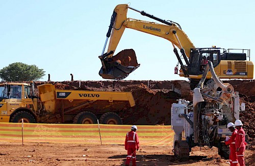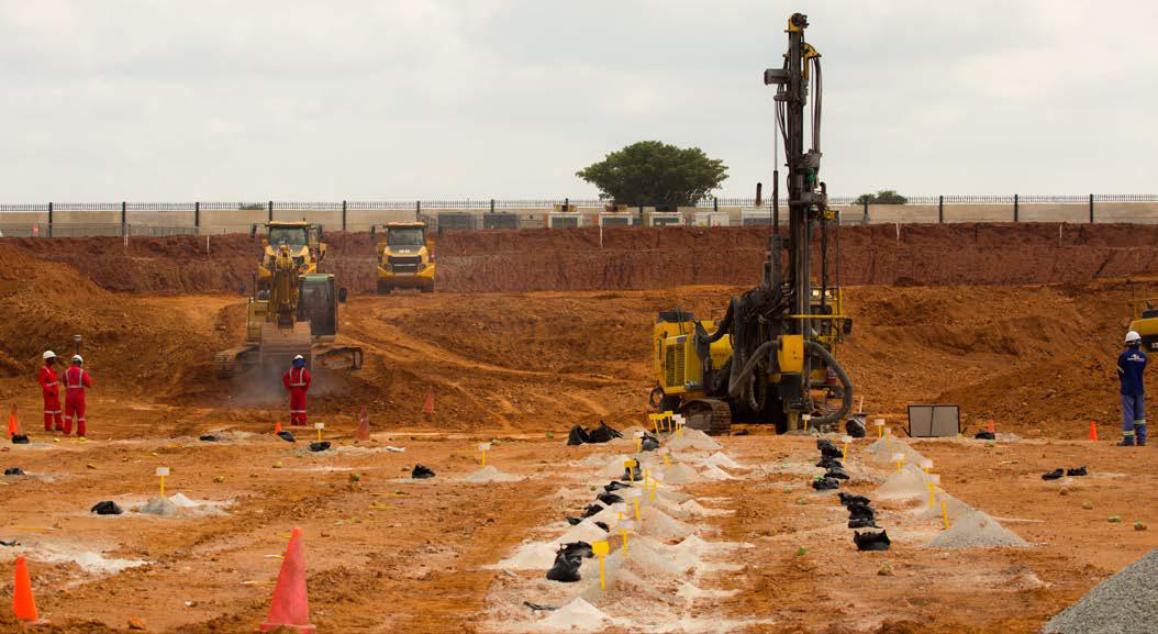 The first two surface blasts for Shaft 2’s box cut were successfully completed earlier this month; four additional blasts are planned. The blasting will enable the excavation of the box cut to a depth of approximately 29 metres below surface and the construction of the concrete hitch (foundation) for the 103-metre-tall concrete headgear (headframe) that will house the shaft’s permanent hoisting facilities and support the shaft collar. Excavation of the box cut is expected to be completed by the end of the year.